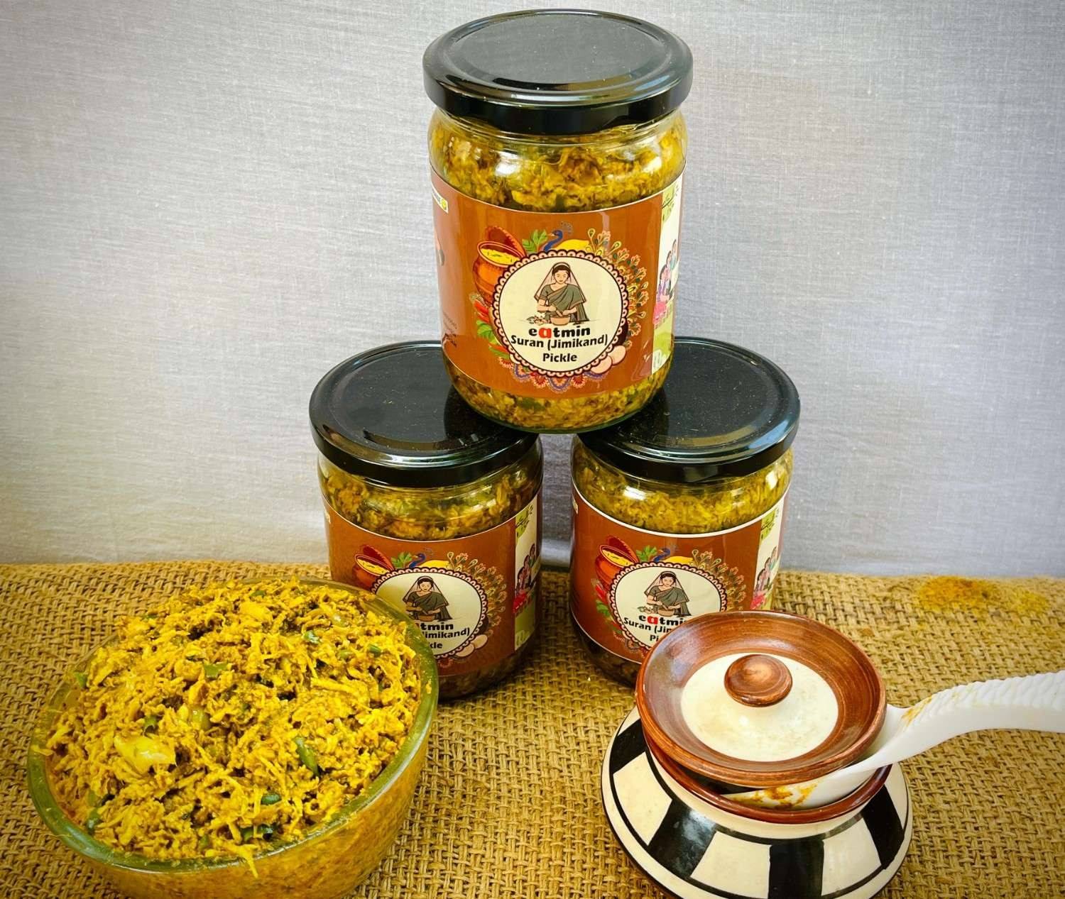 Love bold, spicy flavors? Meet Eatmin Mircha Adrak Lahsun Pickle—a delicious mix of fresh green chilies, zesty ginger, and aromatic garlic, blended with traditional Indian spices and cold-pressed mustard oil for a rich, homemade taste.
